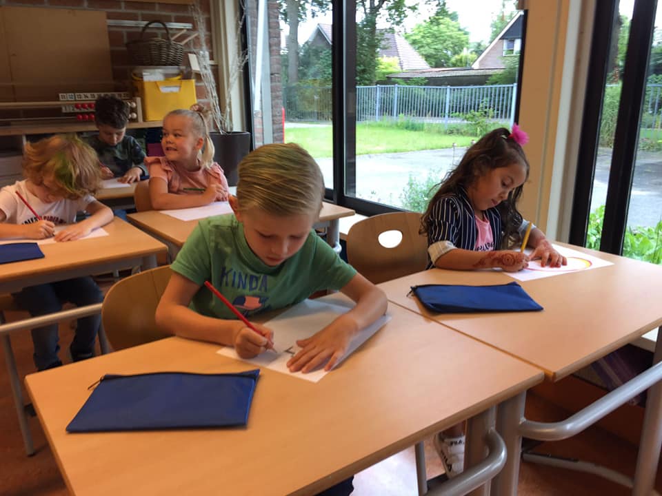Nee natuurlijk niet! We schrijven ook nog veel. Taalopdrachten, schrijven maar ook opdrachten voor wereldoriëntatie doen we nog "gewoon" met pen en papier. En soms beslist de juf om een opdracht met bewegend leren te doen.